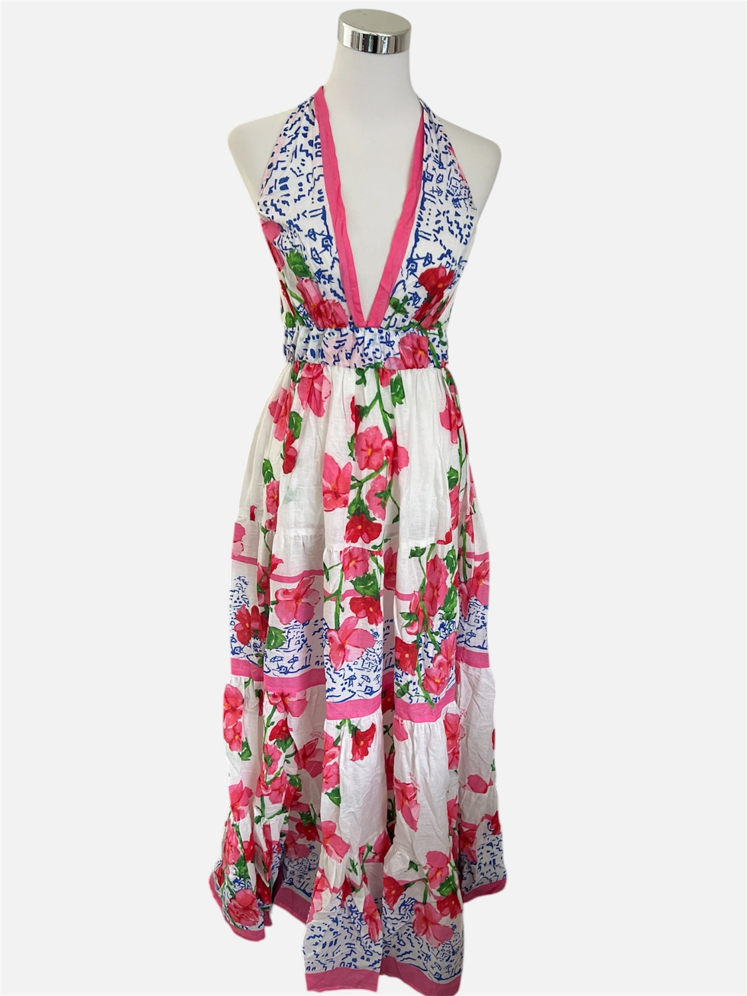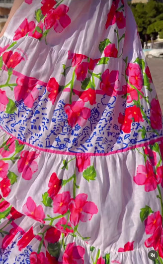 Wunderschönes, luftiges Boho Maxikleid von Antica Sartoria mit floralem Muster. Ideal für Sommer, Urlaub oder Strand.
